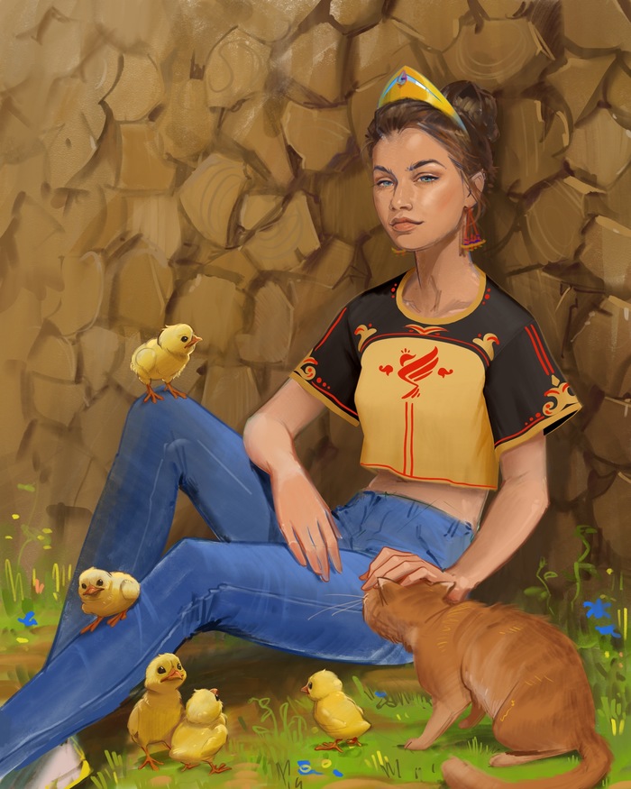 Началось всё как не странно НЕ с одежды. В 2019 году я просто рисовал иллюстрации на тему русских народных сказок. Хотелось это сделать красиво и по-современному, но одновременно не потерять самобытность и узнаваемость. Благо наша культура невероятно богата выразительными персонажами, локациями и яркими образами. После был небольшой период, когда я погрузился в тематику оформление детских садов. Параллельно с этим всем делал концепты персонажей именно в современной одежде, но в визуальном стиле русских народных сказок. После того как начал получать положительные отзывы и по совету друзей, оставил только это направление и продолжил спокойно работать над дизайном одежды. Не знаю как бы сложилась судьба проекта, если бы не пост на Пикабу ровно год назад, но после этой публикации жизнь проекта приобрела совершенно другое качество.