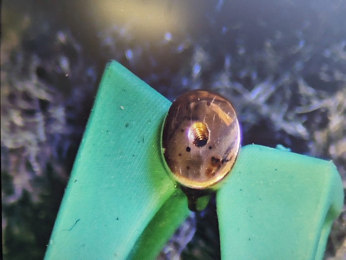Обнаружила жена жена такие вот пятна на застежке 585 золотых серьг. Типо коричневые пятна +- правильной формы и что примечательно только на стороне застежки, которая примыкает к уху сзади