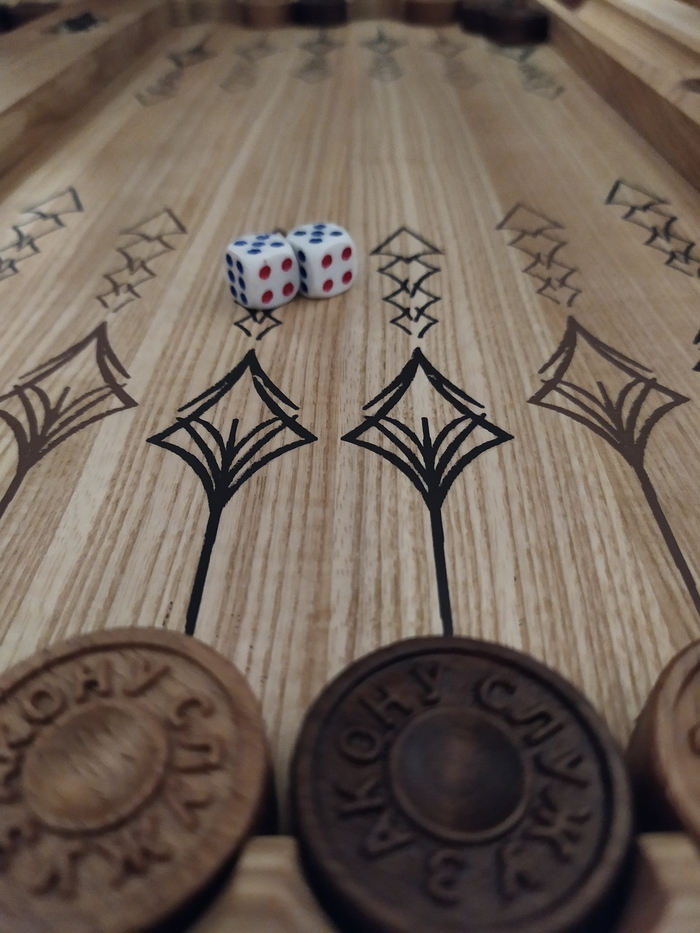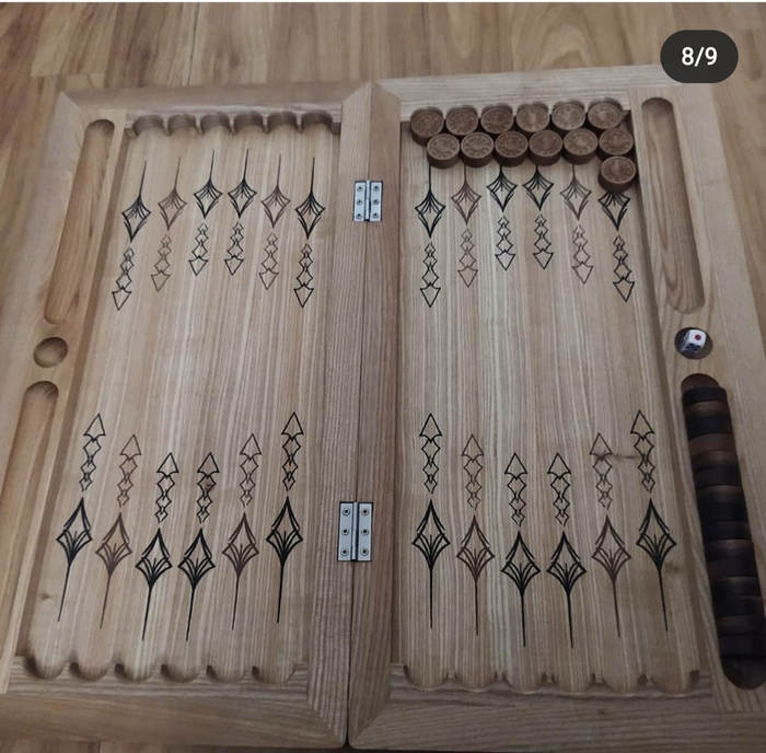 Нарды размером 600*600 мм. Зарики купленные, посчитал что изготавливать самому бессмысленно.