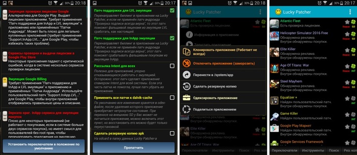 Она имеет такие интересные функции, как: отключение рекламы внутри приложения, отключение проверки лицензии приложения, клонирование приложений, установка пользовательских патчей для приложений.