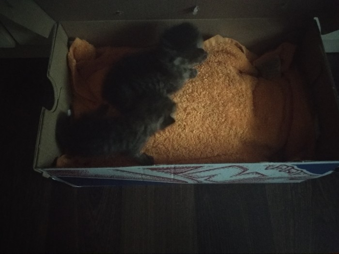 Кратко: шла моя коллега по двору и увидела двух котят, которых активно хотел покушать несколько ворон. Отогнала - они через несколько минут вернулись. Были опрошены местные мальчуганы и сказали, что никакую кошку-маму не видели, котятам по виду было дня 2-3.