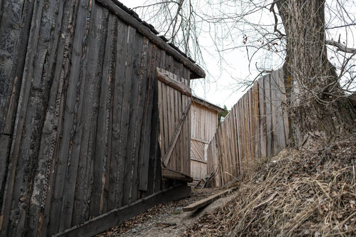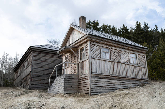 Все дома — деревянные, с крылечками, на которых так тянет посидеть. На окнах висят пестрые ситцевые занавески, однако внутрь зданий попасть нельзя — двери плотно заколочены. Чтобы поселок не подвергался набегам «печенегов», в одном из домов дежурит охранник.