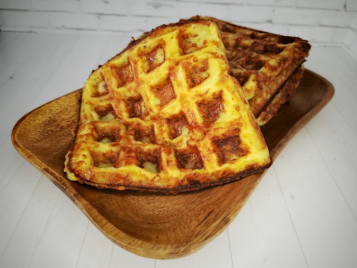 Масло можно не добавлять, если вафельница нормальная. Обычную муку можно заменить на рисовую, миндальную или вообще какие-нибудь овсяные отруби, молоко можно взять обезжиренное, на сыр можно просто грустно посмотреть, но не добавлять его. Будут грустные вафли имени правильного питания.