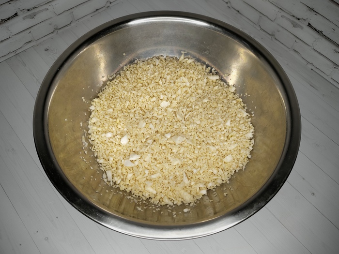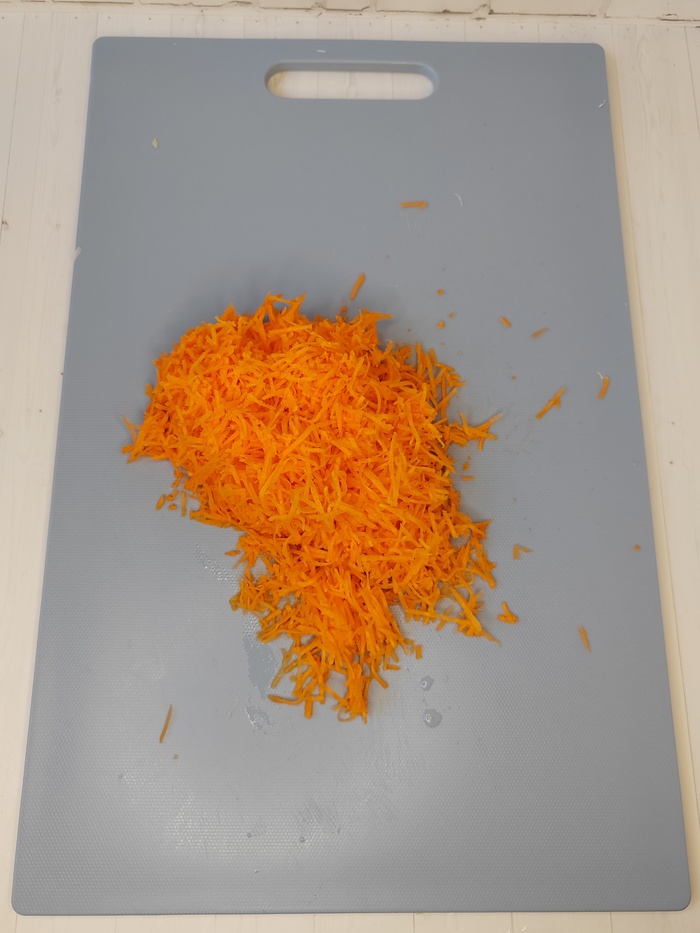 4. Моркву и корень сельдерея крошим в каттере. Не совсем в труху, но не крупно. И тоже по отдельным мискам. На самом деле, корнеплоды можно и руками пошинковать, но это долго и лениво, а на конечный результат, как по мне, влияет не то чтобы сильно.