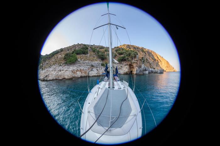 Изначально я мыслил стать в ближайшую бухту. Но там оказалось много лодок, высыпавших в воду купающихся туристов, а нам хотелось чего-то более уединенного.