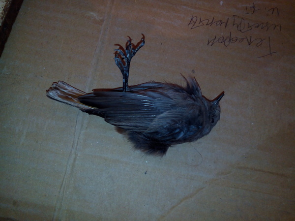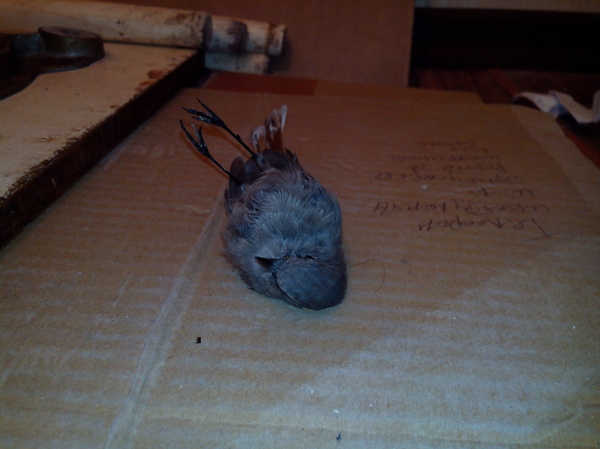 Беру одноразовую перчатку и достаю небольшую серую птичку размером с воробья