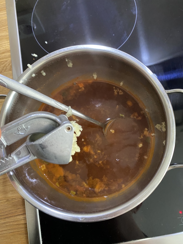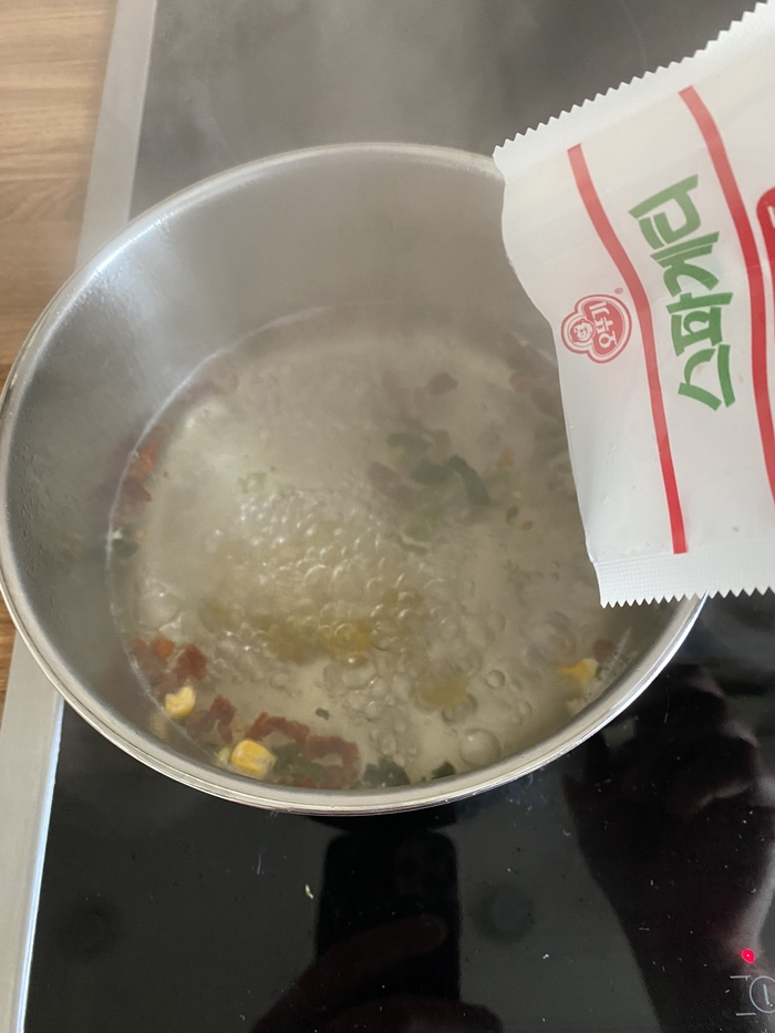 Поэтому 500 мл. воды кипятим и кидаем в неё сухие овощи.