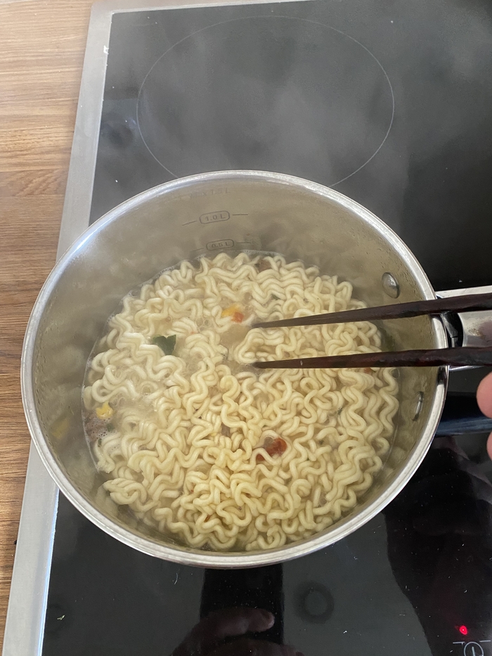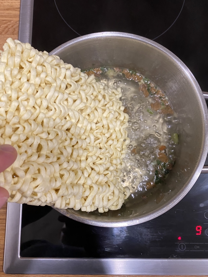 Следом в воду отправляю лапшу.