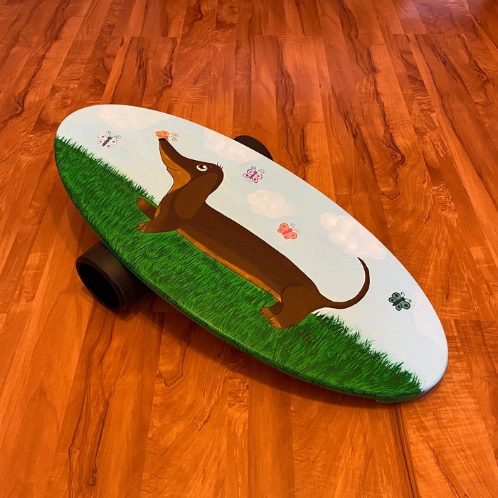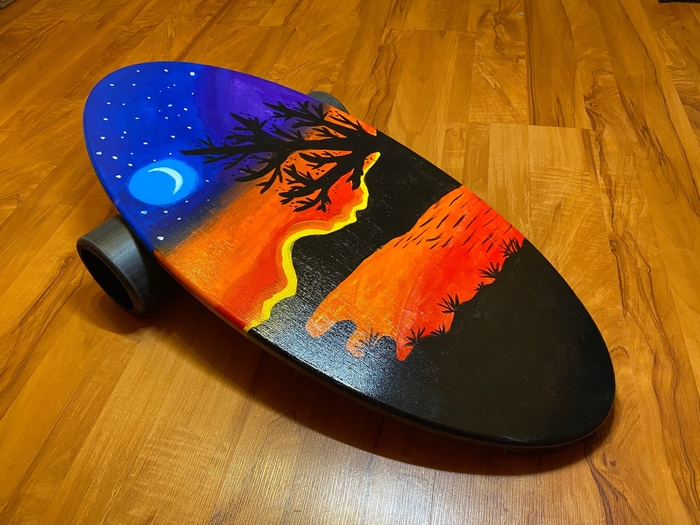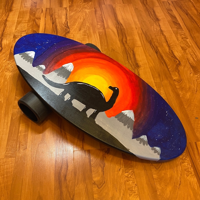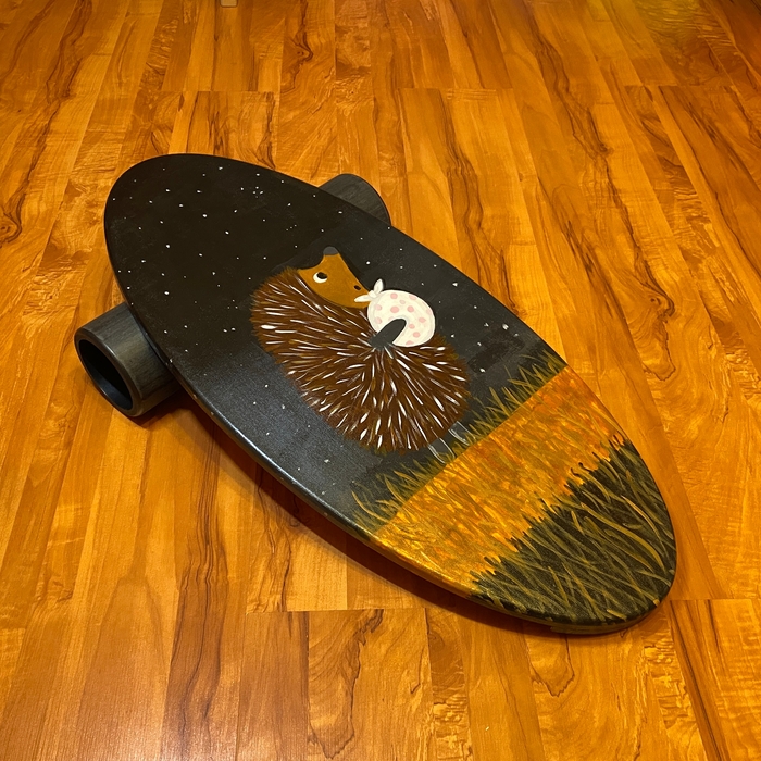 Два года назад моя дочь начала расписывать балансборды. После довольно долгого простоя она на снова принялась за старое, но на этот раз решила изобразить что-то не из своего репертуара.
