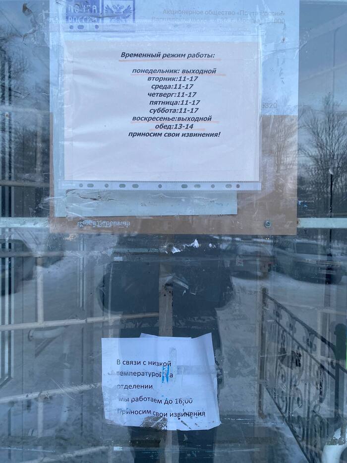 "В связи с низкой температурой на отделении мы работаем до 16:00 Приносим свои извинения".