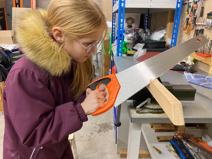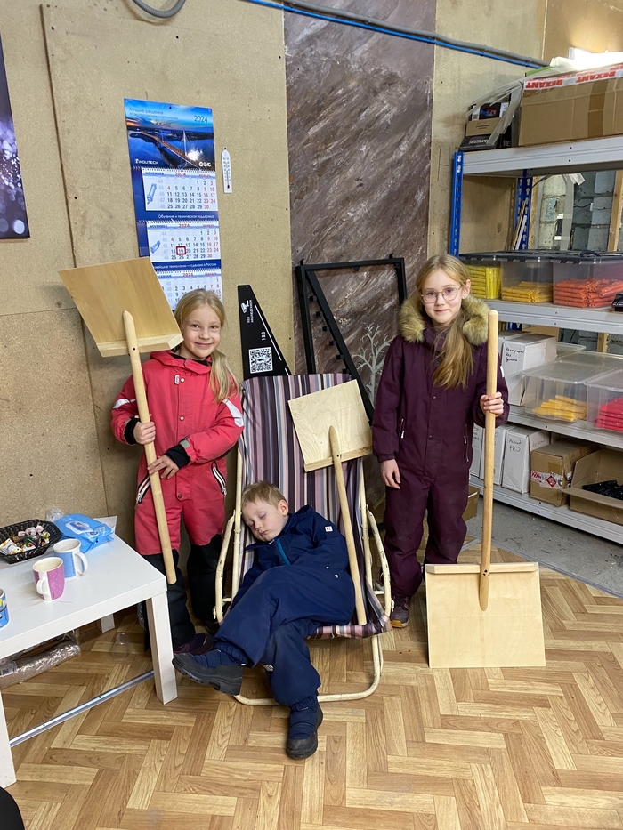 На выходных с детьми поехали в гараж. Для них это был новый опыт, поэтому всё обсуждали и работали не спеша. Размечали, пилили, шкурили, сверлили и скручивали. Каждому сделали лопату, подходящую по размеру. Дети остались довольны. На всё про всё ушло около трёх часов. Малой даже успел уснуть)