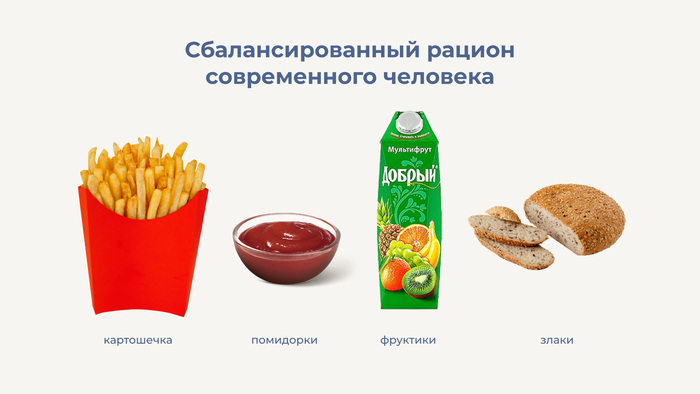 Многие согласятся с тем, что современные продукты значительно хуже тех, что были раньше. Овощи теперь со вкусом травы. В яблоках даже не заводятся черви, потому что обработаны химией. А БАДы — это будущее, ведь современные продукты теряют питательную ценность, мало чем отличаясь от пластика и годятся максимум для наполнения желудка.
