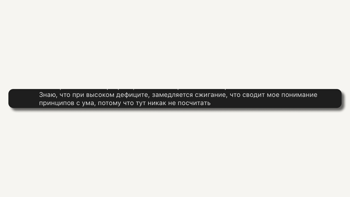 Есть еще утверждение, что большой дефицит и быстрое снижение веса не дают закрепиться результатам, риск срыва и отката к прежним показаниям выше. Но это не всегда так.