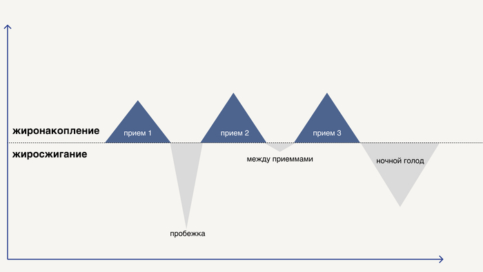 Толстеем каждый раз, когда едим и худеем в перерывах между приемами пищи. А накопление жира зависит от того, какой из этих процессов преобладал в течение суток.