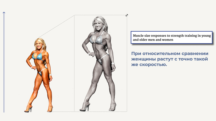 У женщин ниже стартовые позиции, поэтому в абсолютных значениях на фоне мужчин они растут действительно медленнее, но в процентном соотношении относительно массы тела так же.