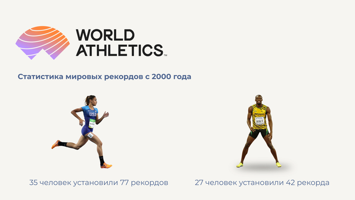 Ради публикации я просмотрел все мировые рекорды с 2000 года в самом объективном спортивном состязании — в (моей любимой) легкой атлетике. Женщины за последние 23 года установили больше мировых рекордов чем мужчины: 27 человек против 35. А если учитывать то, что один человек ставил несколько мировых рекордов, получается вообще 42 рекорда против 77.