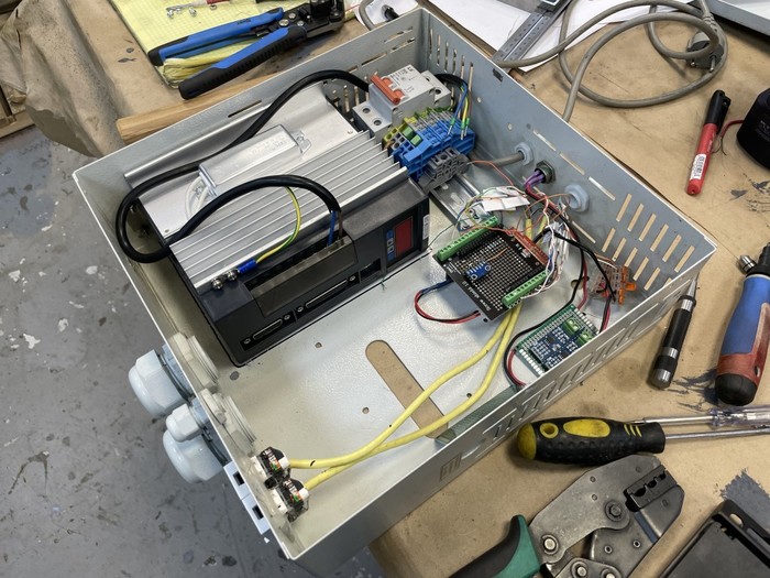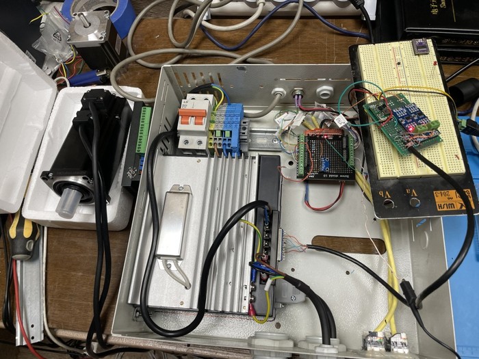 Фаак. Этот железный ящик, шаговики и россыпь драйверов, блоков питания у меня живет на столе уже не первый месяц, а ВОЗ и ныне там, бабла потрачено уже порядочно, вроде как-то работает, но ставить на станок в таком виде противно, остается последний вариант, можно было еще попробовать closed-loop stepper, но это не сильно дешевле и я хотел уйти от шаговиков в принципе, потому, что сам принцип движения рывками, пусть и мелкими, и удержания с диким тепловыделением, для автоподачи не совсем лучшее, посему заказываю сервопак, пусть китайский, но мне просто столом елозить, думаю, если не пойдет в автоподачу, всегда можно потом использовать в ЧПУ- плазморезе, да где угодно, вещь в хозяйстве зачетная, хоть и дорогая.