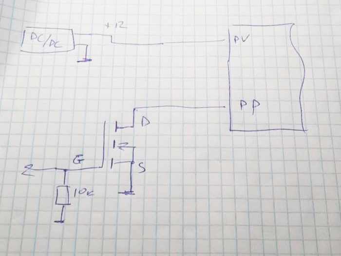 В ночи, рожаем схему включения, кто будет повторять, учтите, что при управлении по диф входам и через транзистор, используются разные пины разъема, при диф подключении - PP+/PD+ и PP-/PD-, при транзисторном - PV и PP-/PD- и ни куда, кроме PV +12В не должно залететь иначе попадете на бабки. Транзистором комутируется земля!