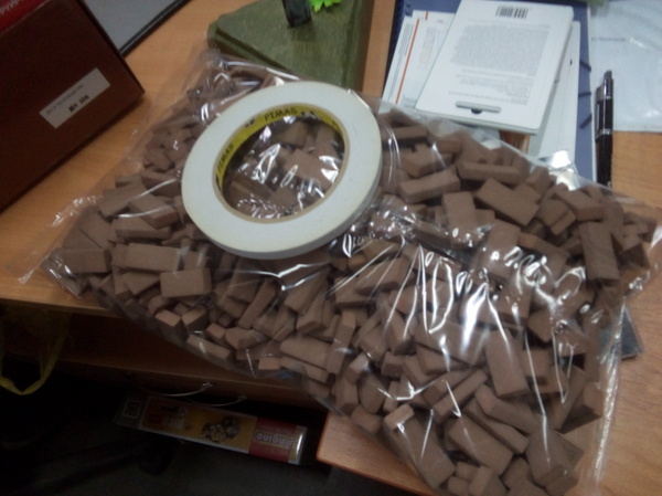Да-да. В комплекте двухсторонний скотч и "кирпичики" из материала похожего на смесь поролона и какого-то пластика.