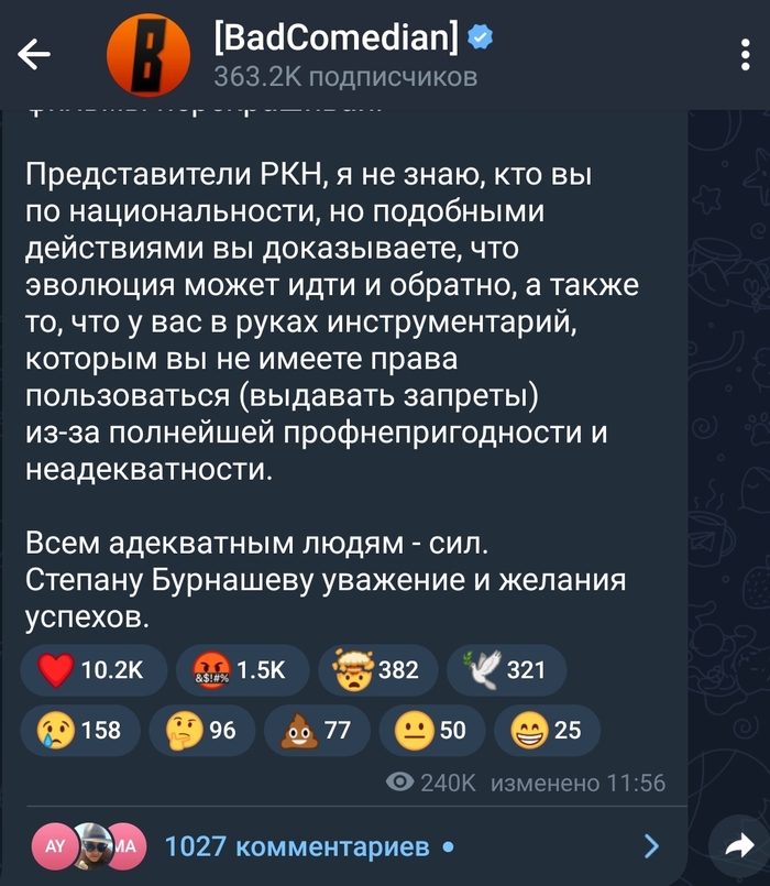 Роскомнадзор заблокировал Женю BadComedian Баженова в своём сообществе