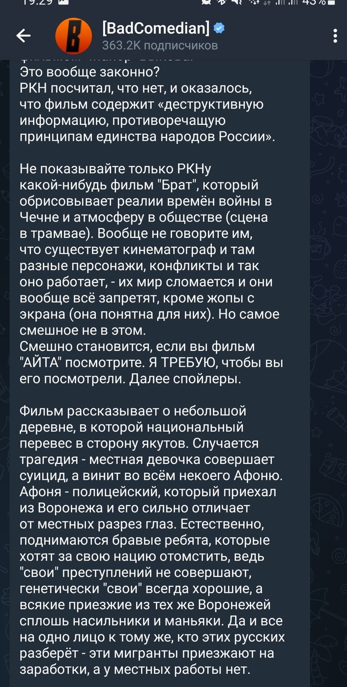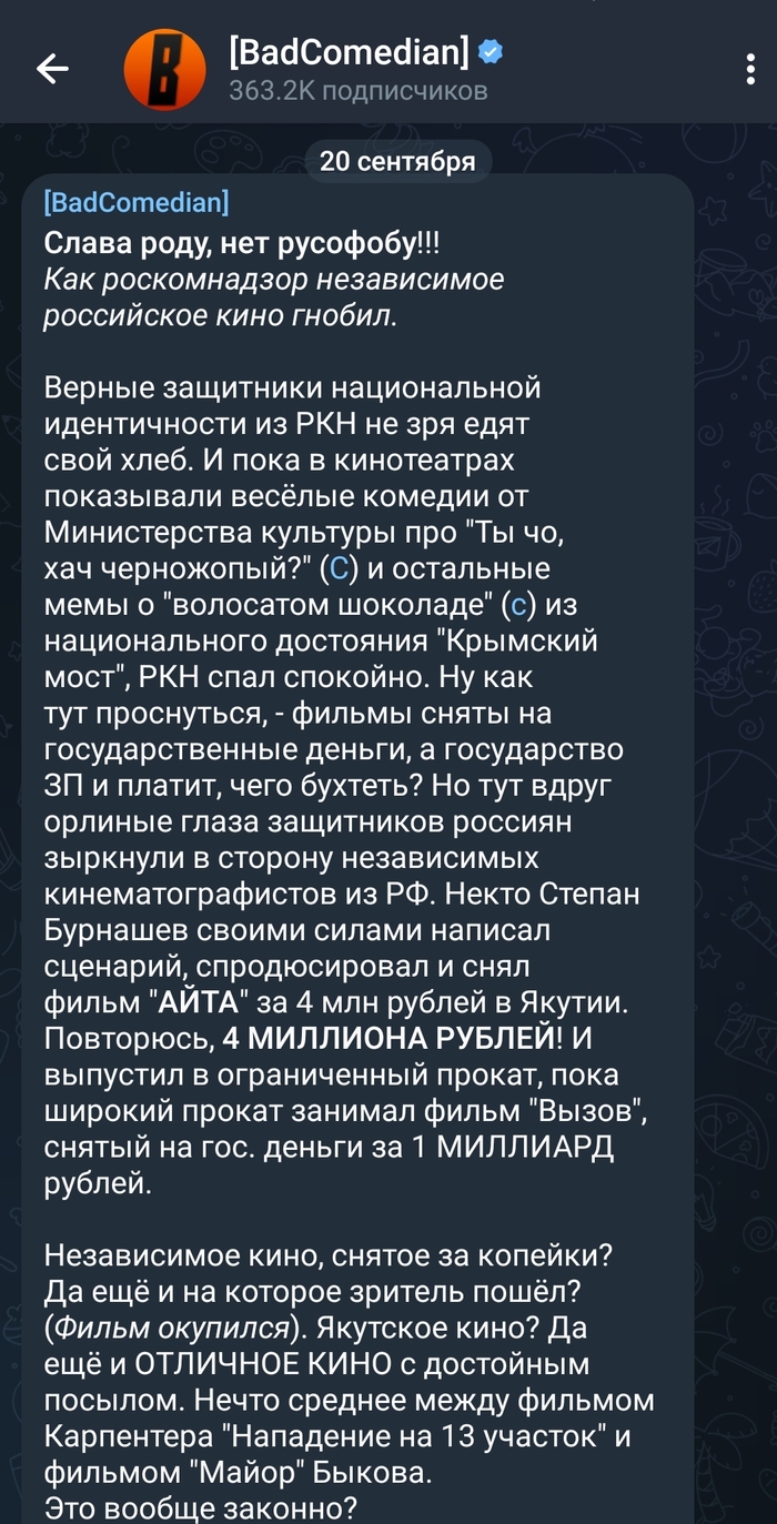 Роскомнадзор заблокировал меня за вопрос про фильм "Айта"