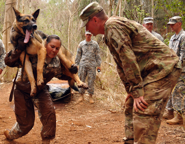 Собаки-борцы с террористами из Рио-де-Жанейро, Бразилия. На учениях.