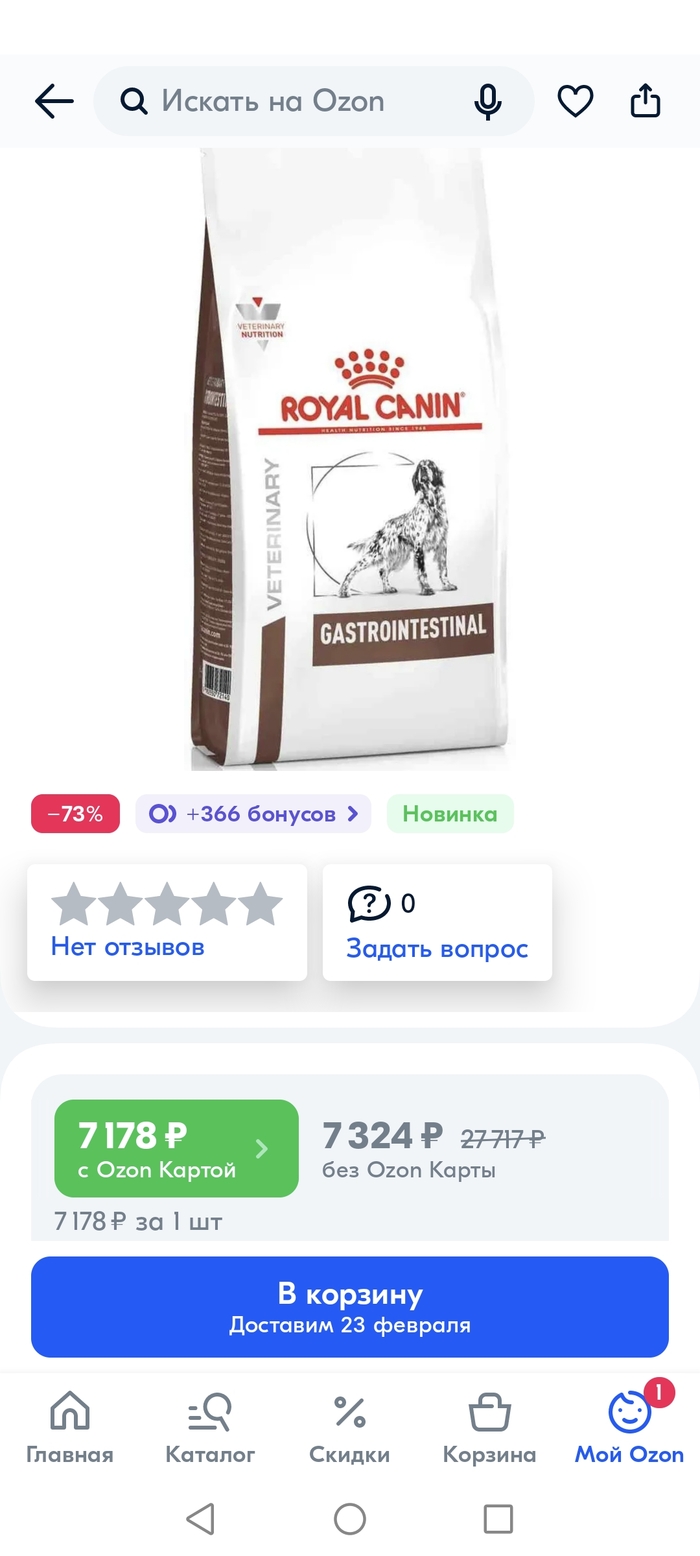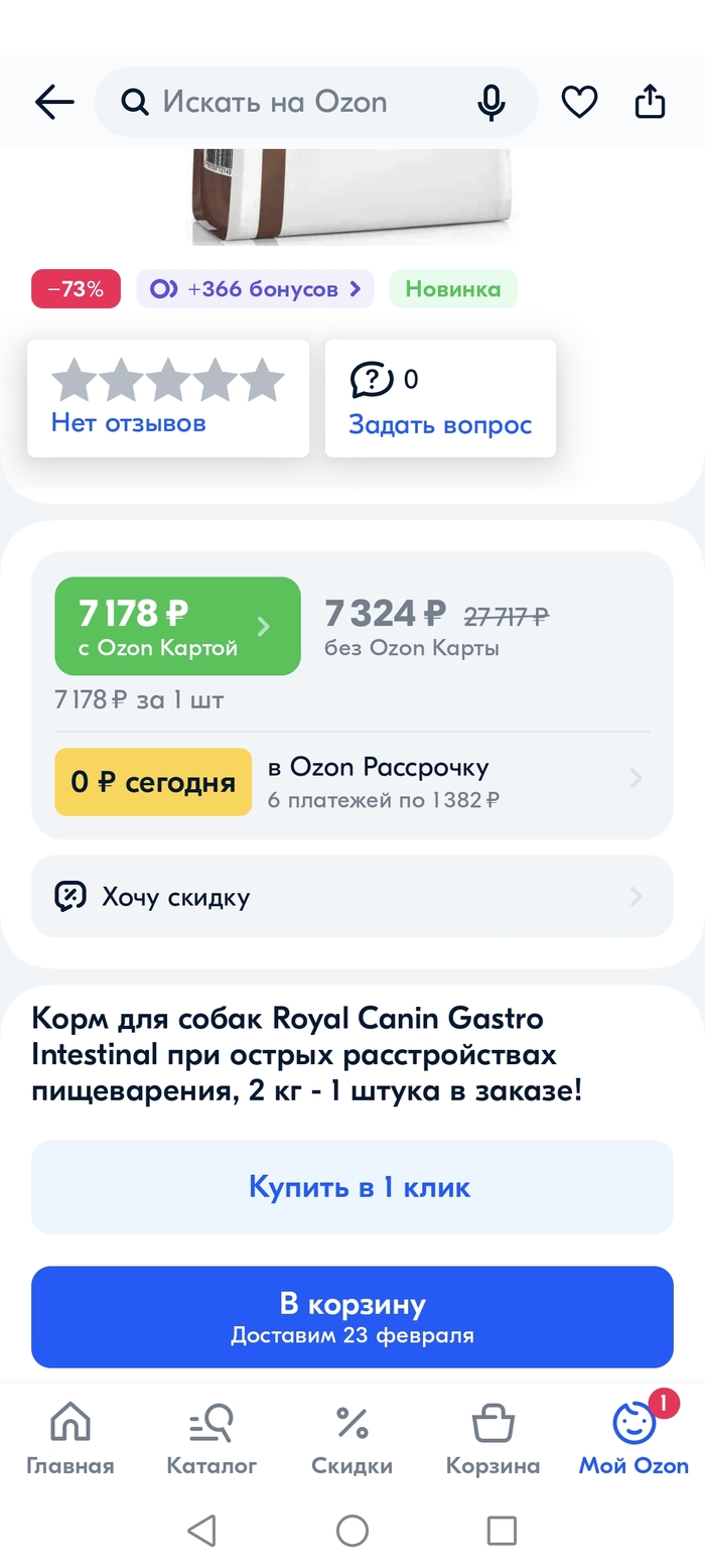 Как вам корм за 50к рублей 12кг? Но скидку же епт дают, огромную, 75% аж.