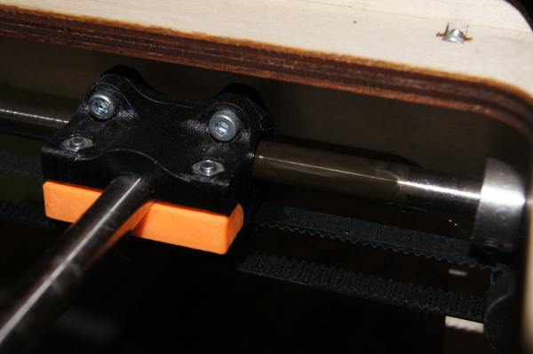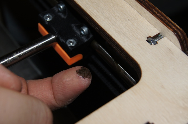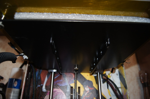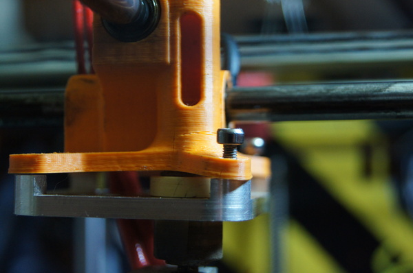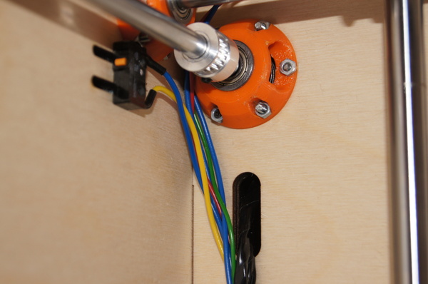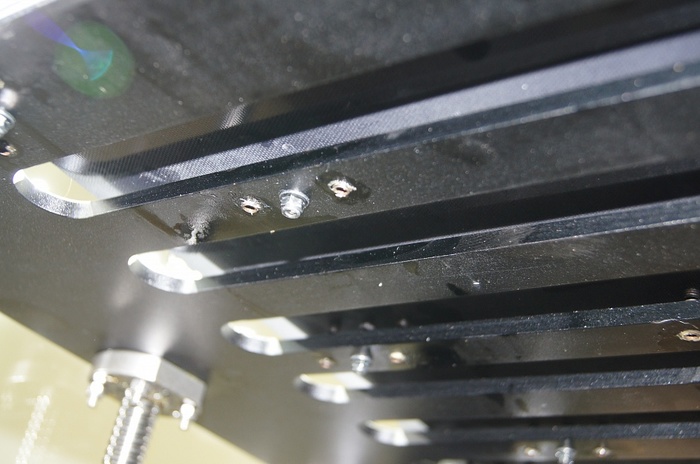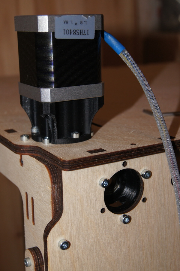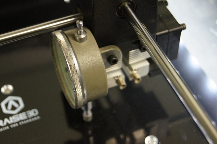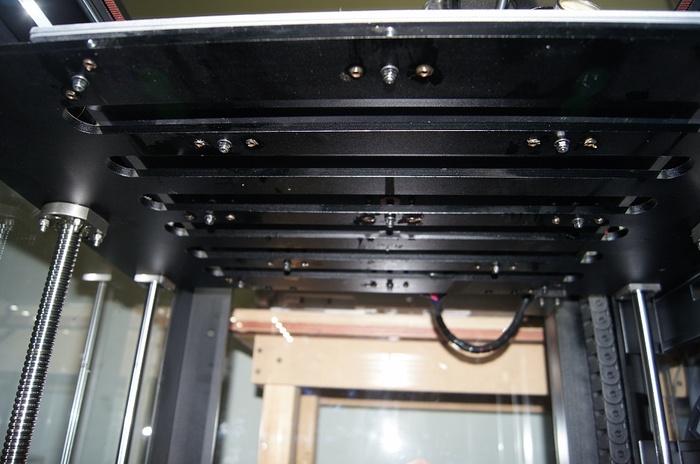 По оси Z установлена ШВП (шарико-винтовая передача), правильно закрепленная! Это важно. Дело в том, что для 3D принтера особо не требуется использовать ШВП, трапецеидальный винт более чем достаточен, люфт самоустраняется за счет веса стола, зато нет специальных требований по креплению этого самого винта, верхний конец может свободно "болтаться". В случае же с ШВП - недопустим никакой перекос, и такой толстый винт при биении будет отгибать стол , тем самым появиться вобблинг. Поэтому ШВП нужно закреплять в винтовые опоры и выставлять их строго соосно движению оси. Но как я уже и сказал, у Raise проблем с воббингом нет!