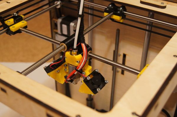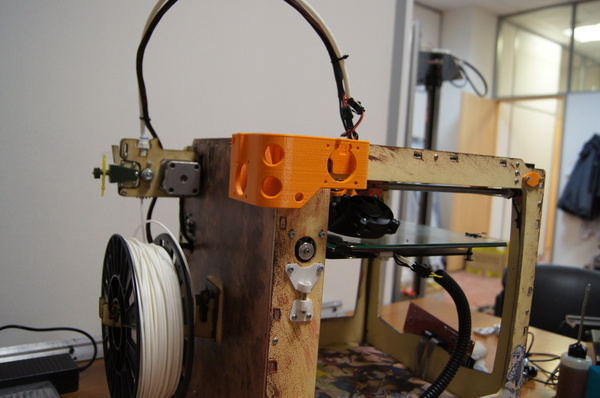 Забыл сказать, принтер построен на механики Ultimaker (официального названия это механика на сколько мне известно не имеет, поправьте если не прав). Что мне лично понравилось. Не понравилось то, что они поставили на головку (которая в теории должна быть максимально легкой) два шаговых двигателя, сделав прямую подачу пластика. Да, есть куча поклонников Direct drive (и у прямого привода куча плюсов), но из за этого приходится снижать максимально возможную скорость, обидно. Плюс к тому не увидел в механизме подачи пластика подпружиненного прижимного ролика. Примерно так же устроено в UP! и UP!2, и если ваш пластик имеет какие то сужения по диаметру, подача тут же прекратиться. (хотя во время тестов такого не произошло).