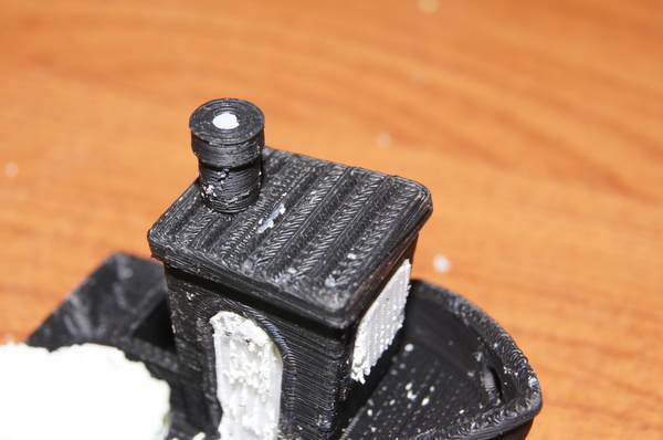 Зеленый кораблик печатался на Picasso, черный на Raise. Зеленый полностью очистить не удалось, из за особенностей построения поддержек. Черный же получилось очистить побольше, и все равно горизонтальные поверхности не получились идеальными, как представляла моя больная фантазия.