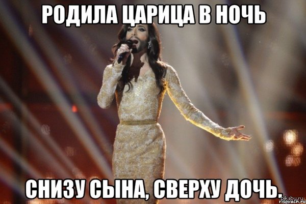 tiger01 Родила царица 11 лет назад шутка украдена с КВН, изначально посвящена Сергею Звереву Кончита Вурст Евровидение Кончита
