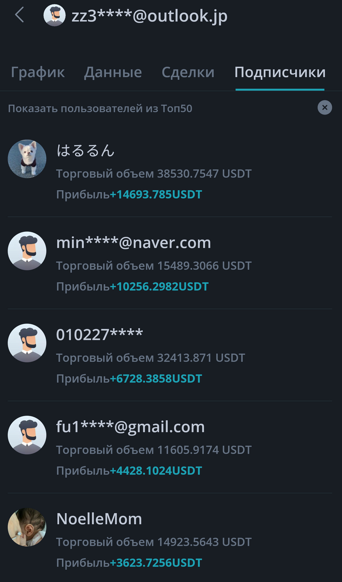 ROI - это сколько трейдер заработал на своей торговле в процентах. PnL подписчиков - общий доход у копирующих. Обратите внимание - у трейдера места ограничены. К топовым трейдерам попасть будет сложно.