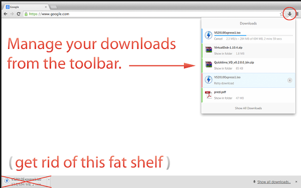 - Downloads - Your Download Box https://chrome.google.com/webstore/detail/downloads-your-dow... Более привычный вид обзора скаченного.