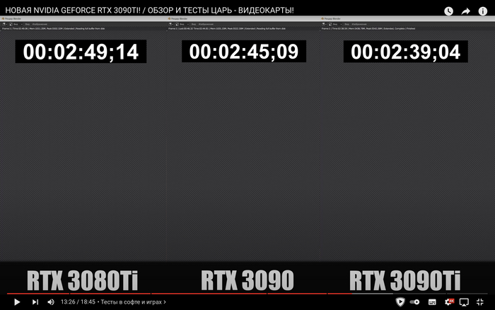 Решил посмотреть обзор на видеокарту 3090ti, автор решил проверить рендер сцены на блендере. Видеокарта 3090ti отрендерила её за 2 минуты 39 секунд.