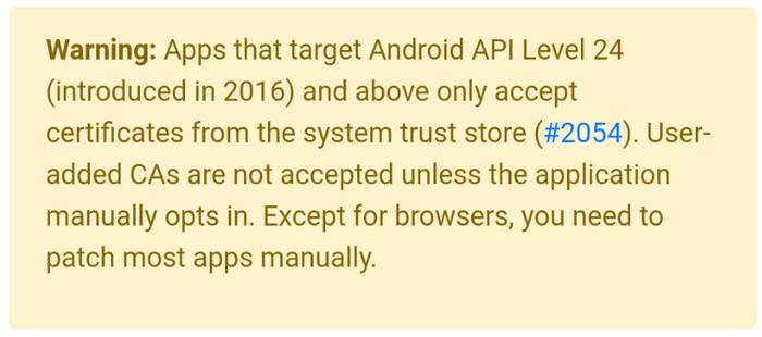 То есть, если я захожу на Пикабу через браузер - пакеты захватываются. А вот через приложение - не работает даже загрузка постов - пишет, что нет сети. Странно... Краем глаза замечаю малюсенькое (ага, оно в 2 раза длиннее, чем вся инструкция по установке сертификата) предупреждение на тестовой странице mitm.it:
