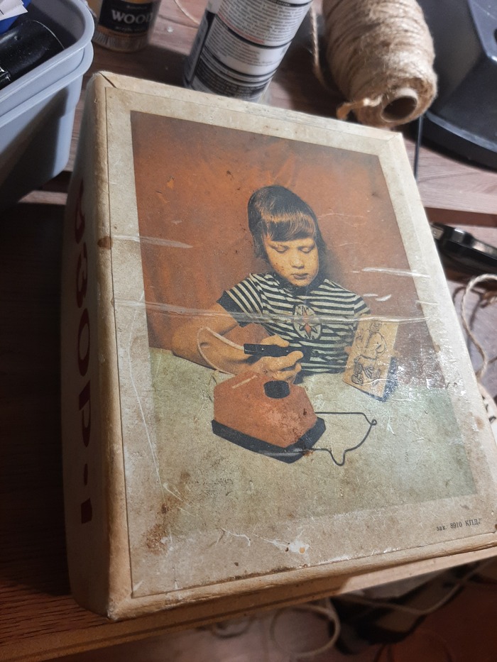 Я уже напридумывала в голове, как юный Пикассо жжет целые картины на фанерах. Но более опытный старший специалист по пайке, покрутив китай, отправился в ностальгическое путешествие по детству, где был у него аппарат отцовский, настоящий советский. И вот его бы сейчас.