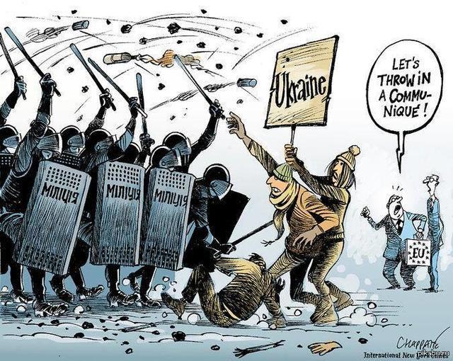 12 toogood США упрекают ЕС за пассивность в украинском вопросе 11 лет назад Карикатура в "New York Times". Перевод:"Давай-ка бросим в них коммюнике!" Украина Революция США Европа