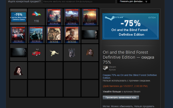 topdevice2x2 Отдам купон на скидку 9 лет назад Стим ко дню рождения подогнал купон на скидку для Ori and the blind forest, но у меня эта игра уже есть. Отдам за спасибо. Добавляйтесь в стим, ник такой же [моё] Купоны Steam Ori and the Blind Forest Отдам