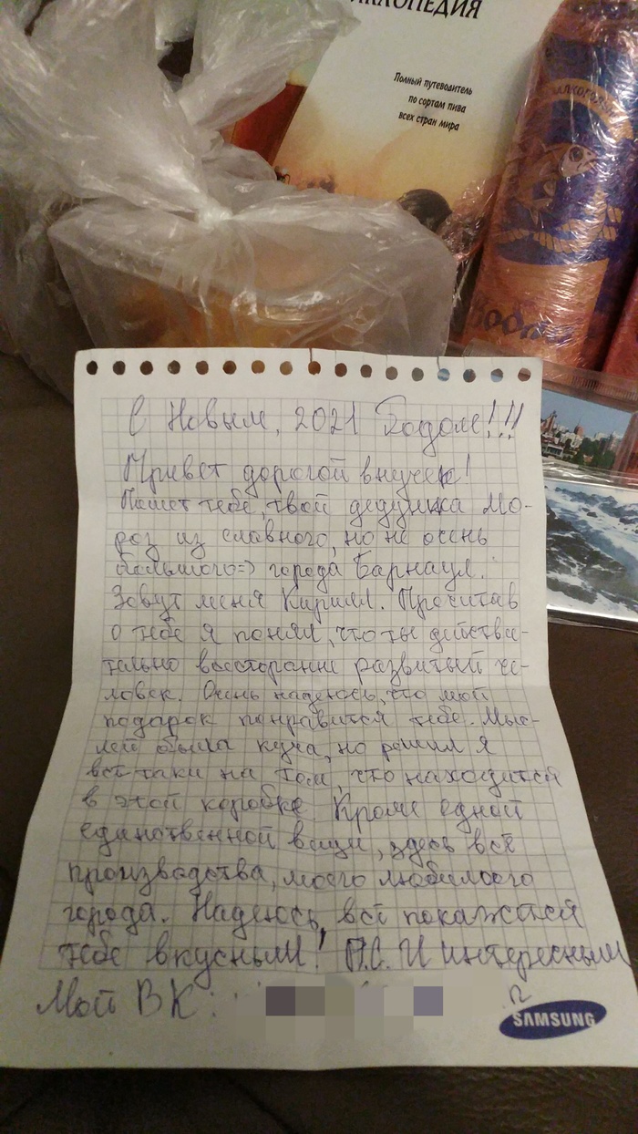 Итак, в этом году, я ка обычно забыл успешно о необходимости отправки, но после получения напоминания от самого проекта ринулся в подготовку. Собрав подарок для своего внучка из Турлатово, отправил его. И никак не ожидал, что из СПб до адреса сайта он доедет за 3 дня.