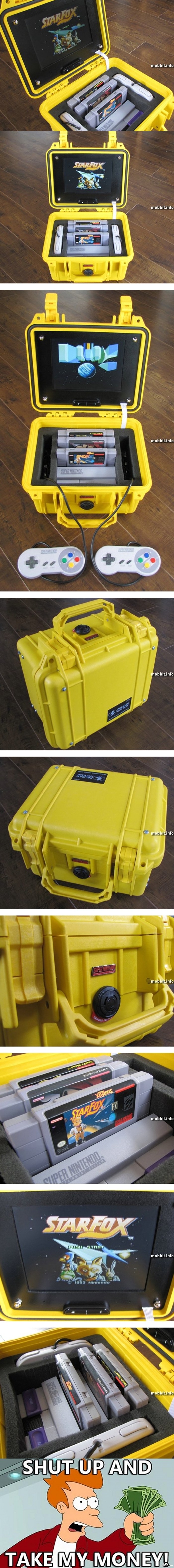 17 tracerzp Портативная версия приставки Super Nintendo 12 лет назад 8-дюймовый ЖК-экран разрешением 800х600, 6 батарей емкостью 5000 мАч. Время автономной жизни «чемодана» достигает 10 часов. стырено с mobbit.info Картинки и фото
