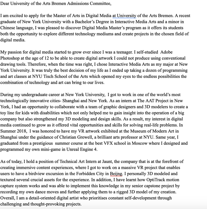 Мотивационное письмо на магистратуру в Германию. Как я с ним поступила в Cologne Game Lab после окончания New York University.