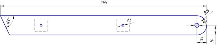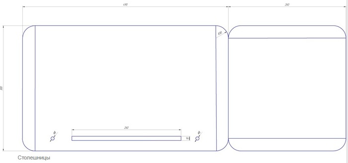 Отверстия в ножках просверлены на расстоянии 14 мм от края и край закруглён по радиусу — это позволит ножкам беспрепятственно складываться и раскладываться.