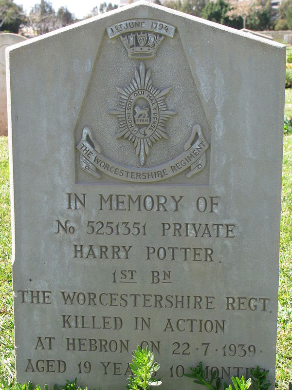 Гарри Поттер - рядовой Королевского Вустерширского полка армии Великобритании. Погиб 22 июля 1939 года, недалеко от Хеврона. Его могила, находится в Рамле и стала уже достопримечательностью для фанатов.