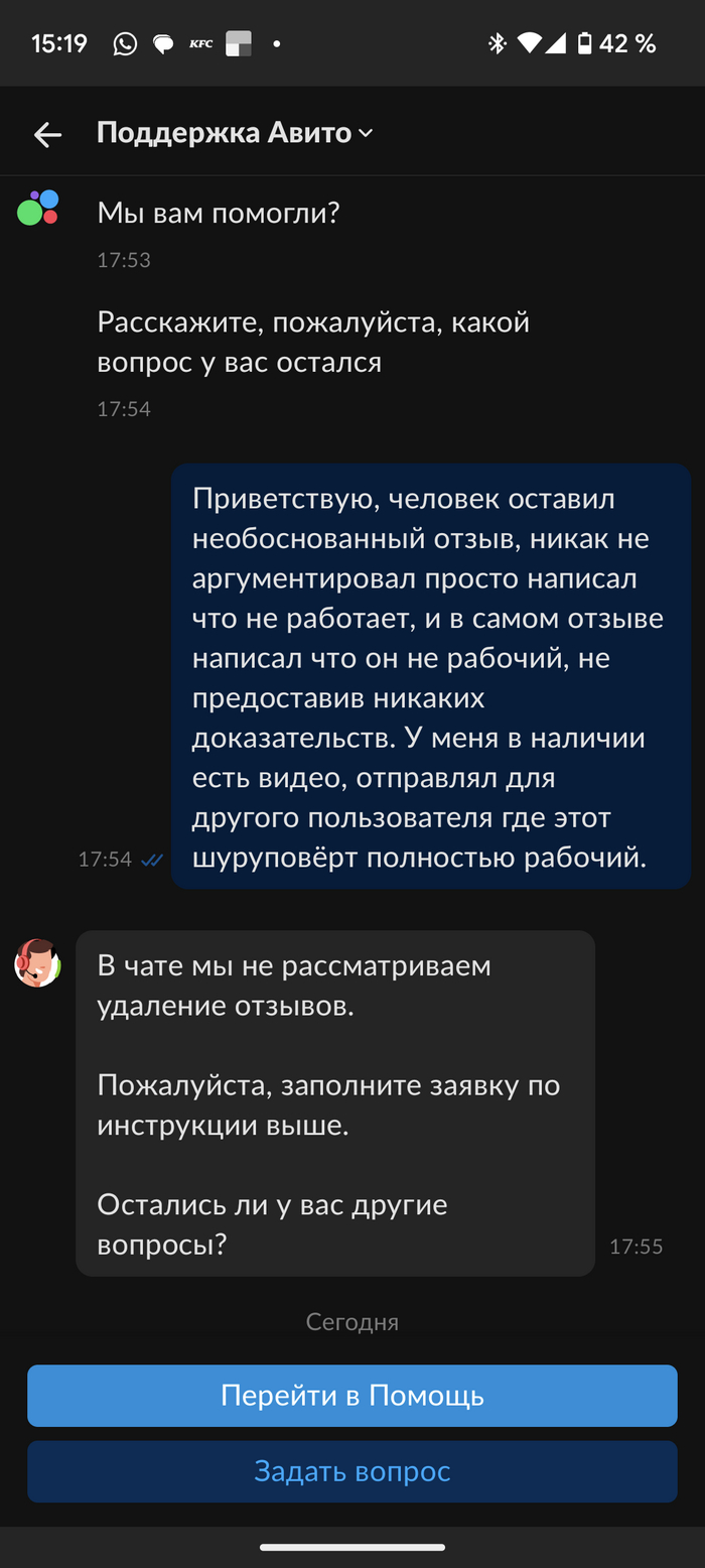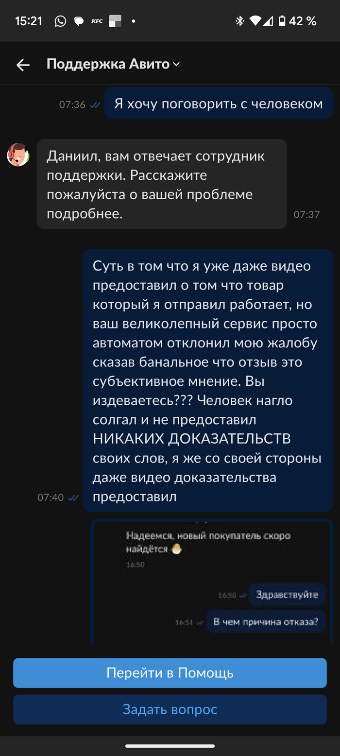 Просто хочу сюда отбомбить. Заранее пишу для профиля Авито: не предлагайте мне написать на почту, у вас есть нерабочая поддержка которая отписывает стандартные отмазки и показывает то как вы ответите мне на почту (то бишь культурно пошлёте на йух).