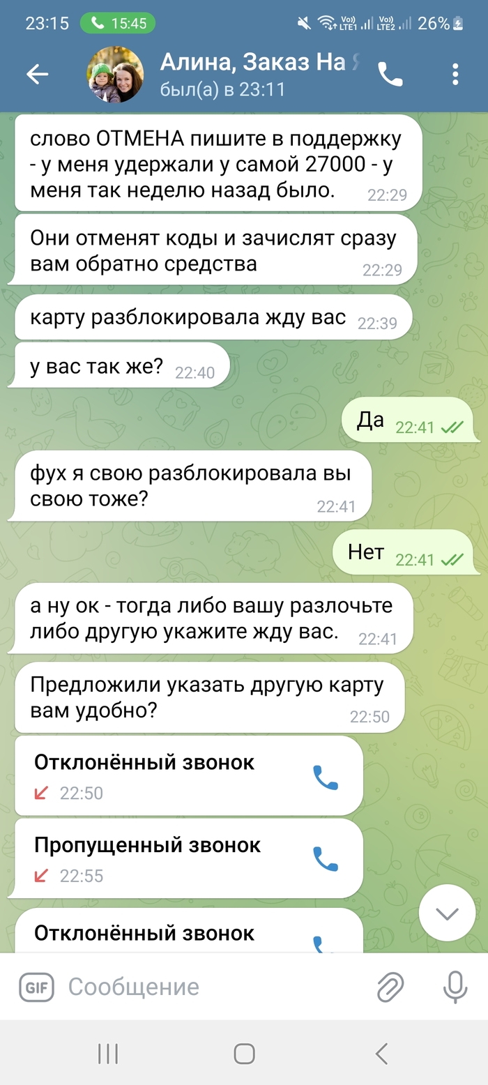 И да, стоит добавить, что мне известно о том, что нужно быть внимательной, не переходить по ссылкам, не вводить данные карт, свои данные не сообщать. А как же не знать, если твердят об этом из каждого утюга. Никогда не беру незнакомые звонки, не доверяю странным предложениям, и все равно.... случилось.