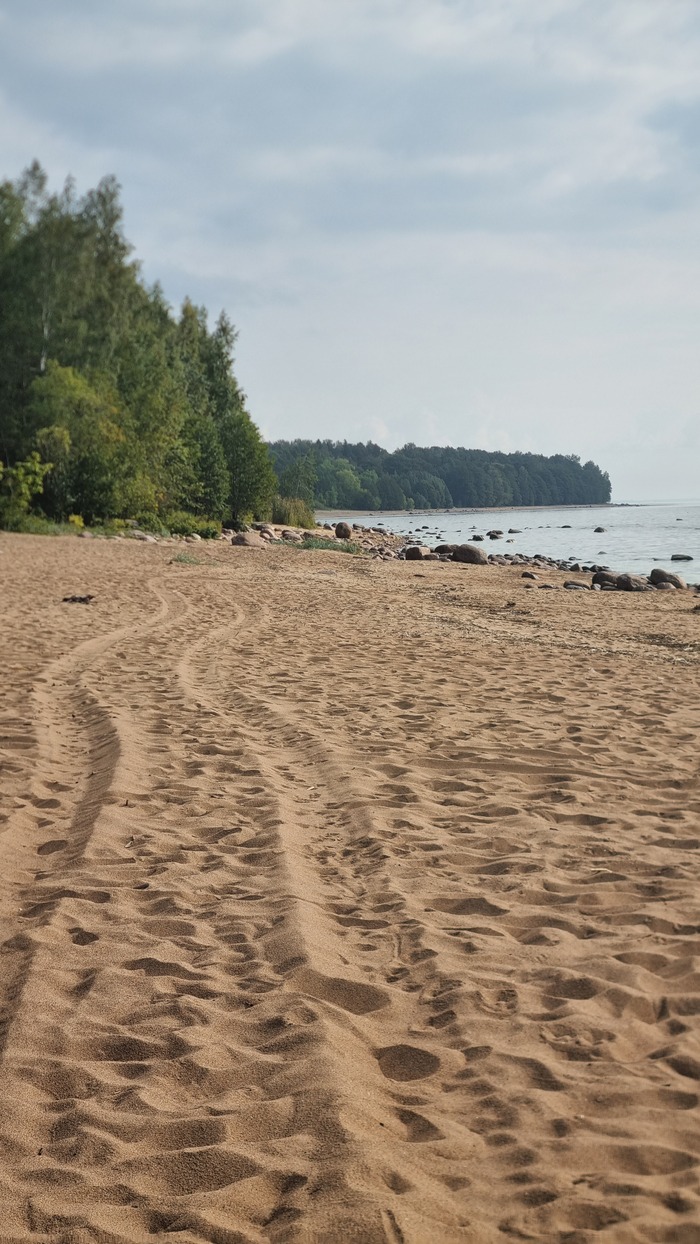 Проехав Сестрорецк, обратили внимание, что дорога идет практически вдоль воды. От бесконечных песчаных пляжей нас отделяла только небольшая полоса хвойных деревьев. Красота... Тут и дымки как не бывало, и потеплело быстро. Ну как же не остановиться, сделать пару фото? Не успели об этом подумать, как муж делает крутой поворот влево к пляжу, проезжает лесопосадку, выезжает на песок. Конечно же мы застряли по самое брюхо. Вот тебе и сделали пару фоток. Не буду описывать наши попытки выбраться, скажу только, что нам это удалось спустя только 3 часа, благодаря проезжавшему мимо отзывчивому водителю на Land Cruiser.