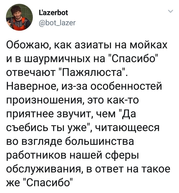 Стою, курю у входа в офис. Рядом, у банкомата, девушка снимает деньги. В очереди к банкомату ещё один человек - парнишка ярко выраженной среднеазиатской наружности. Девушка заканчивает манипуляции с банкоматом, и бодро шурует по своим девушкиным делам. Джигит подходит к банкомату, мнется несколько секунд, разворачивается и струячит за девушкой, всё громче повторяя: "Девюшкее! Девюшке!". Она в капюшоне его не слышит (может, делает вид), а он уже почти голопом к ней бежит. Тут она, то ли услышав его призыв, то ли решив оценить серьезность опасности, оборачивается, видит летящего на нее потомка Чингиз Хана и, видимо повинуясь сигналам генетической памяти, начинает убегать.