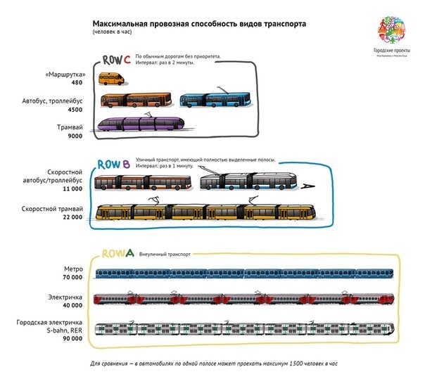 Вот картинка, где показаны приблизительная провозная способность каждого вида транспорта