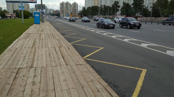 Выделенки тут были и до этого, но не было остановки. "Тротуар" был см 50 наверное, но т.к. будет Выходить/входить очень много людей, сделали временный деревянный настил.