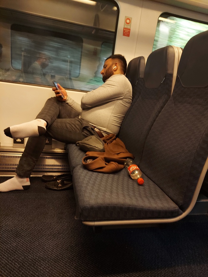 Вчера я читал пост этого пикабушника опять таки будучи в поезде, и напротив меня чувак разулся и сидел в носочках. В Лондоне сейчас жарища, и вспотевшие ноги этого чувака время от времени мотивировали меня сделать ему замечания, но я просто пересел подальше от этого хозяина лёгкого ножного амбрэ.